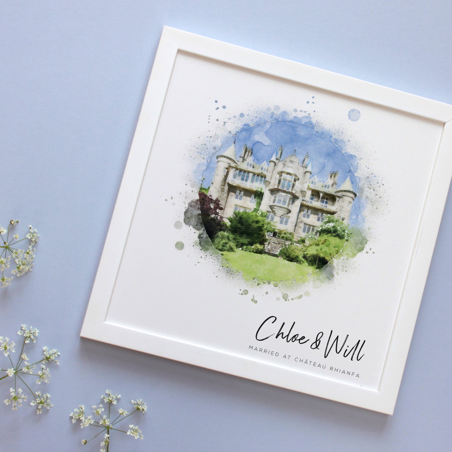Our bespoke wedding venue illustrations capture the romance and beauty of their special day, transforming a photo of the venue into a stunning personalised watercolour artwork. Thoughtful, timeless, and deeply personal, it’s a wedding gift guaranteed to bring smiles (and maybe a few happy tears!).