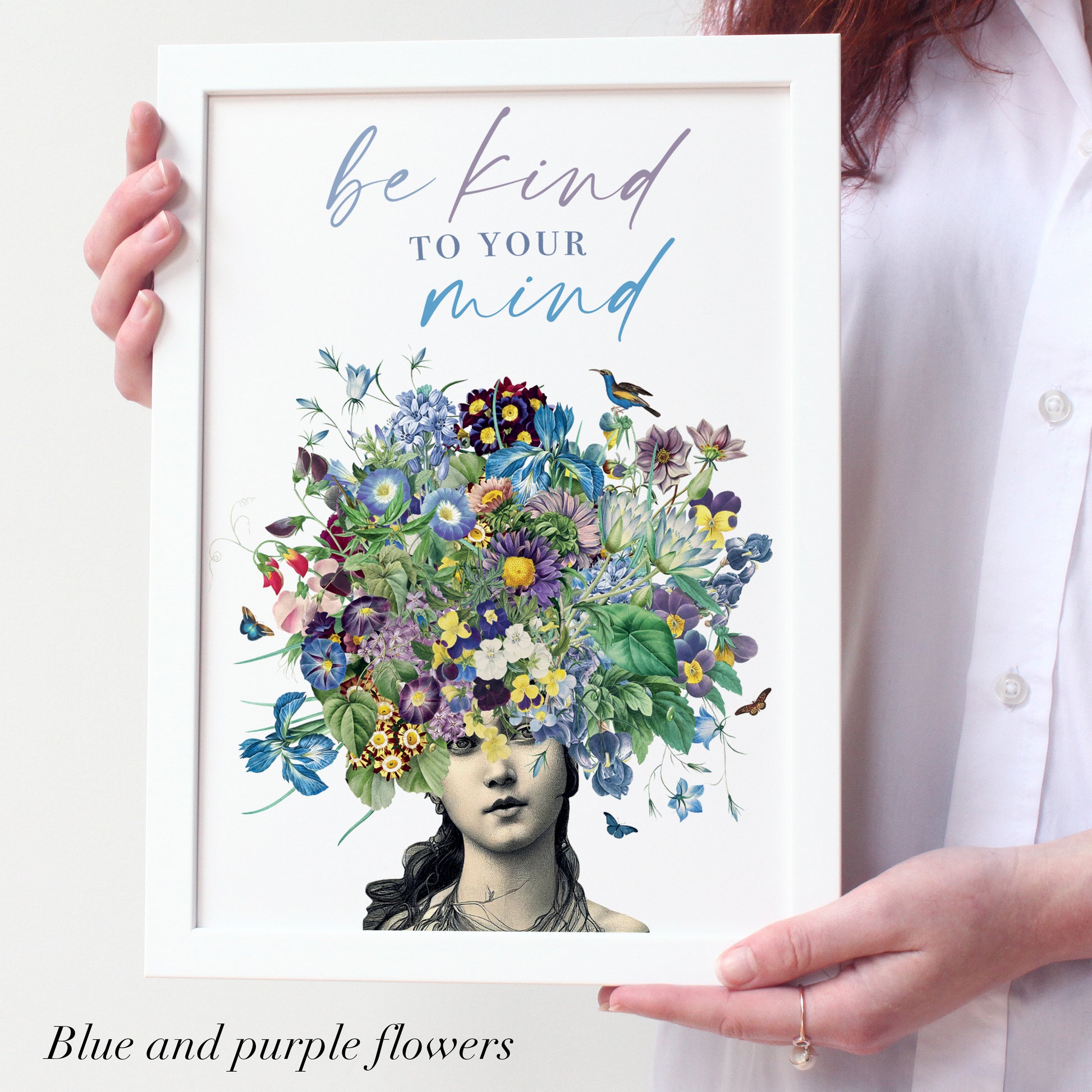 Whether you are thinking of a friend who is in need of a mindful quote to help them through a difficult time or self-gifting, these beautiful prints will certainly create an impact on your wall. Made from hundreds of vintage botanical flowers to create a stunning decoration with flying butterflies and a perched bird. There is so much detail in these pretty floral illustrations, and they are available in three different colourways to suit your interior: white, blue and purple and red. There is a choice of three quotes: 'be kind to your mind', 'live life in full bloom' or 'where flowers bloom so does hope', but if you would prefer a different quote, we are happy to create that for you.