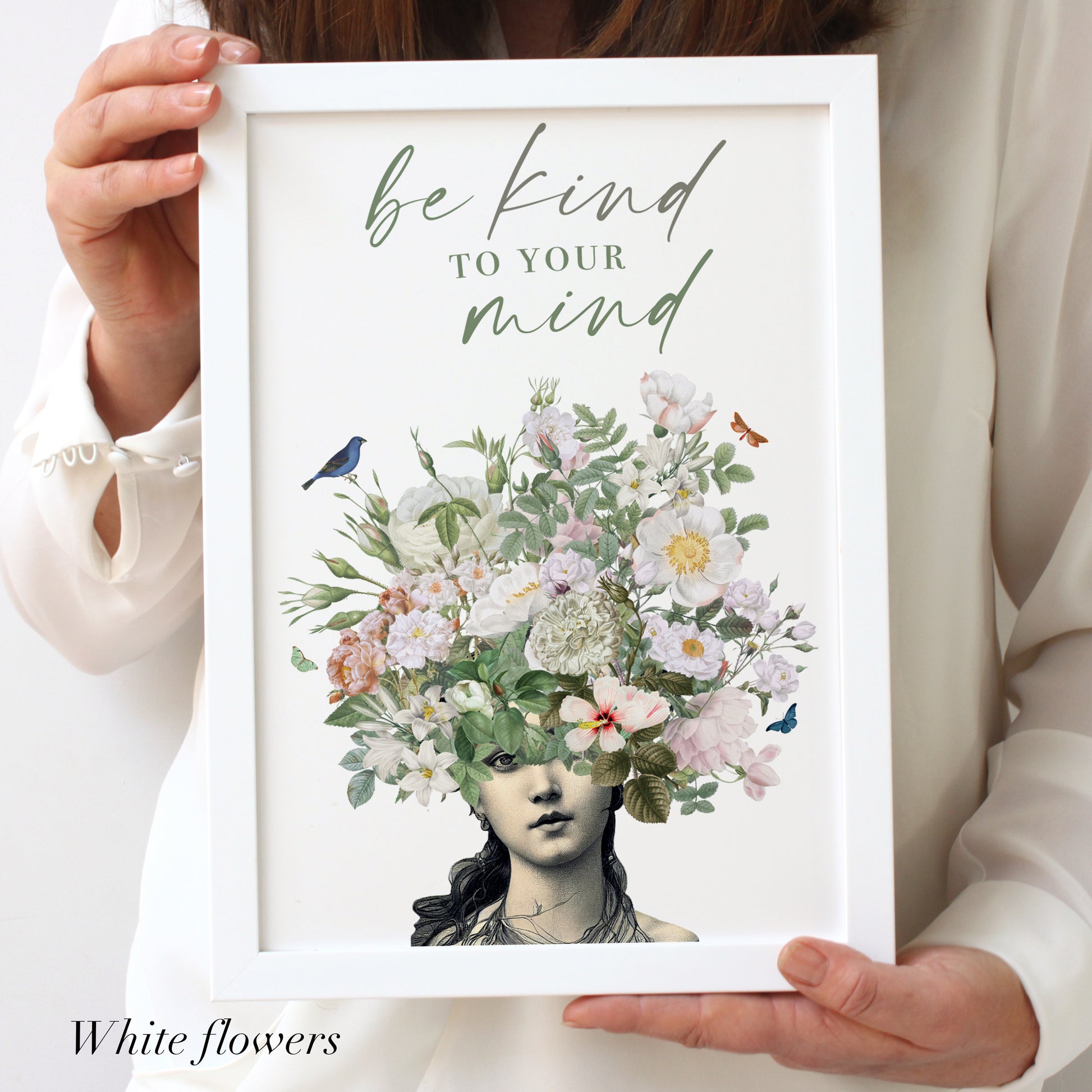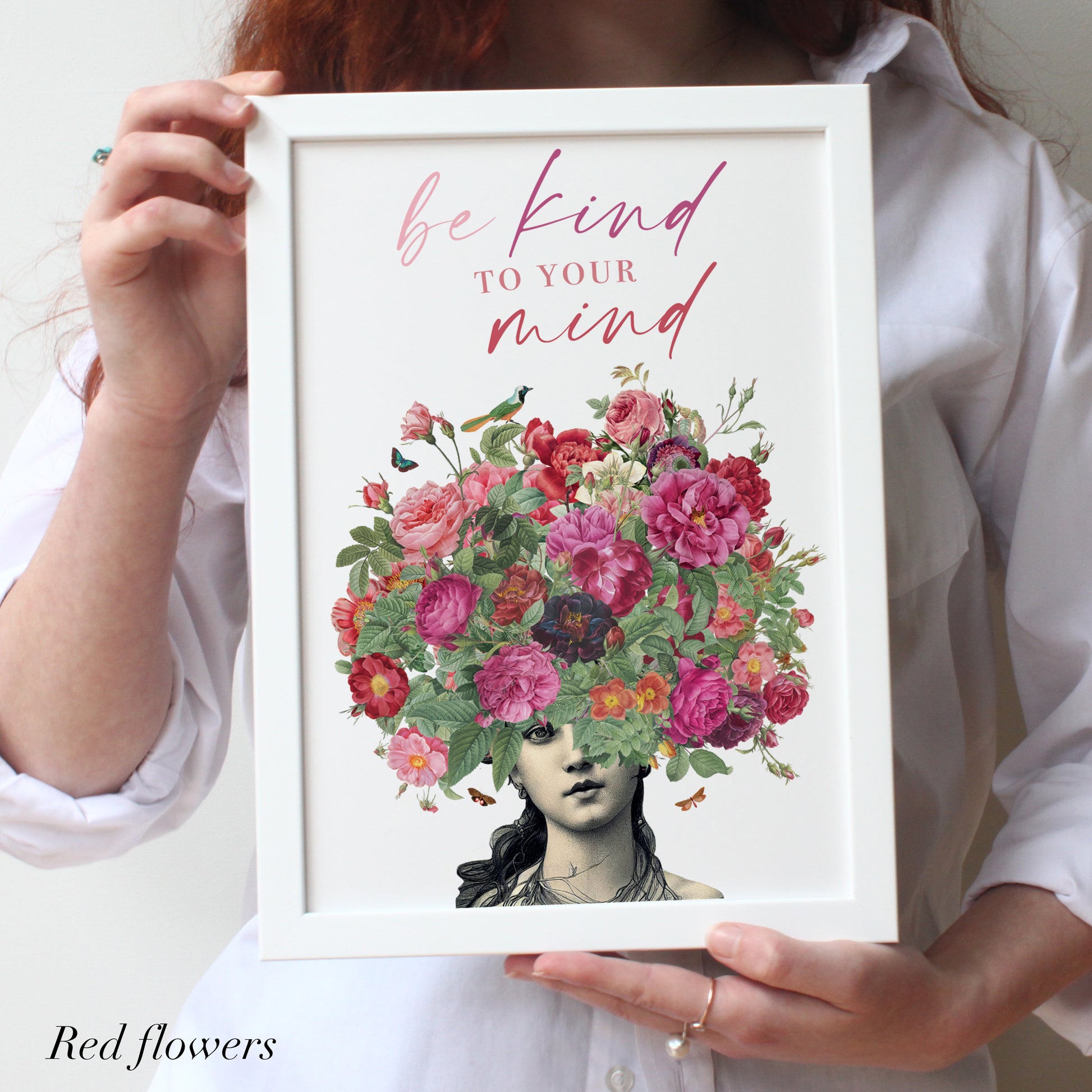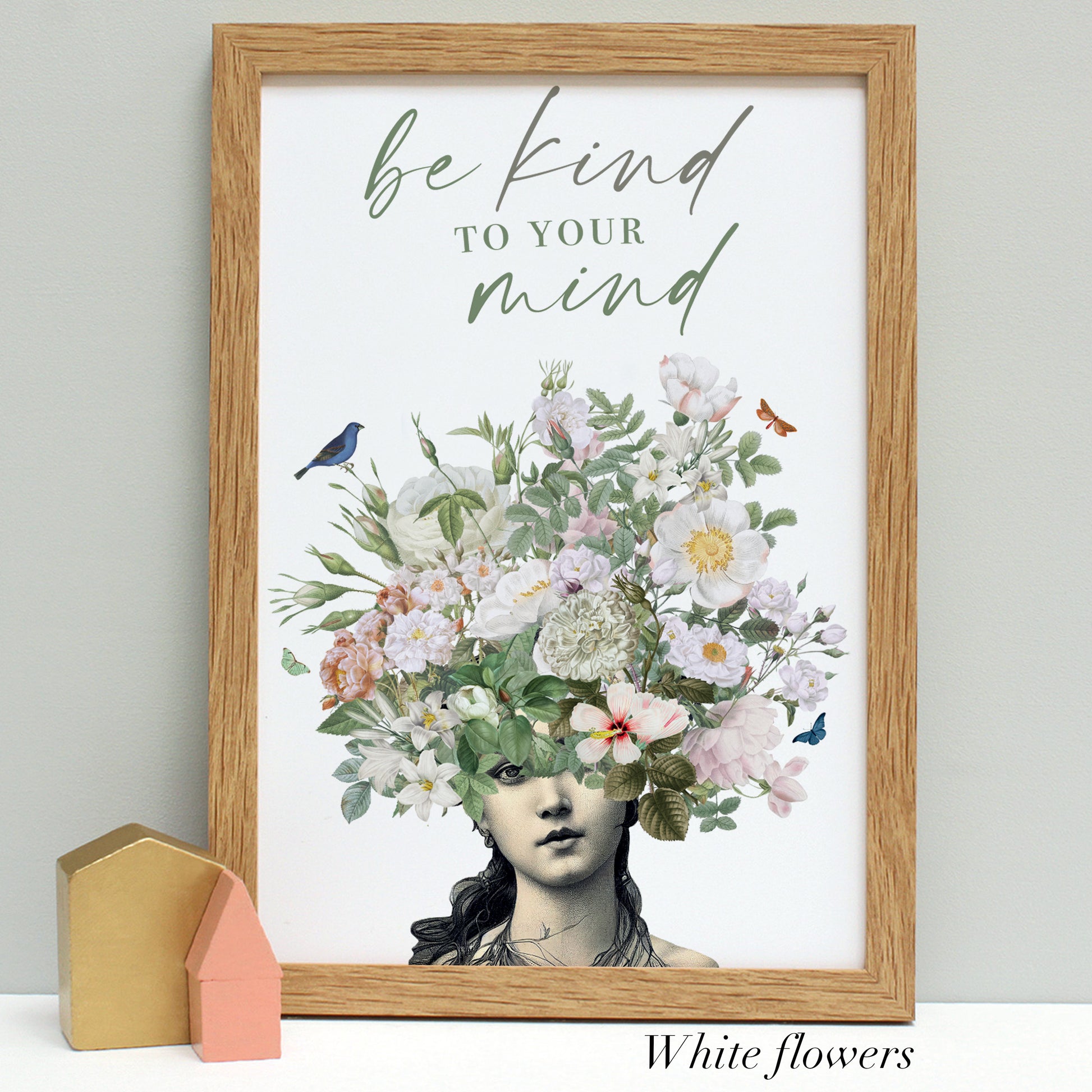 Be kinder to yourself with these mindful quotes which are accompanied with beautiful vintage botanical flowers creating a stunning headpiece.