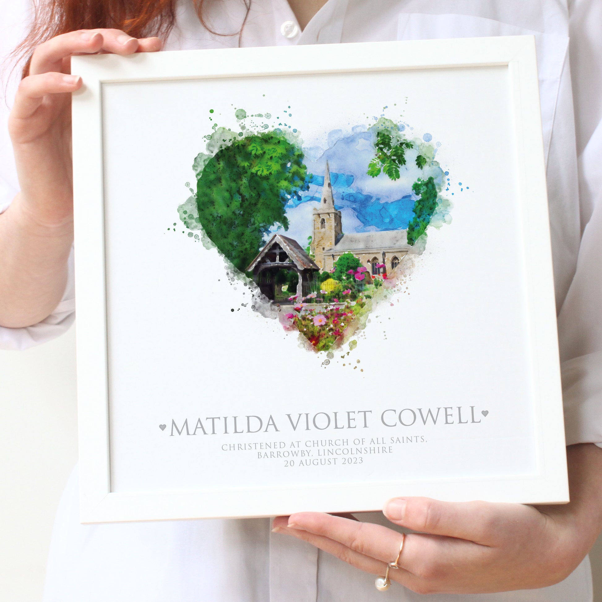 Looking for a unique and memorable Christening gift for your Goddaughter or Godson to cherish for years? Our Christening gift idea features a stunning watercolour illustration of the church or venue where the ceremony will take place. We can even incorporate wildflowers into the artwork, capturing the natural beauty of the location. A perfect gift for Godparents, Godmothers, Godfathers, and Grandparents to give for Christenings, Baptisms, and Naming Days. Give a gift that will truly stand out and be cherished for a lifetime.