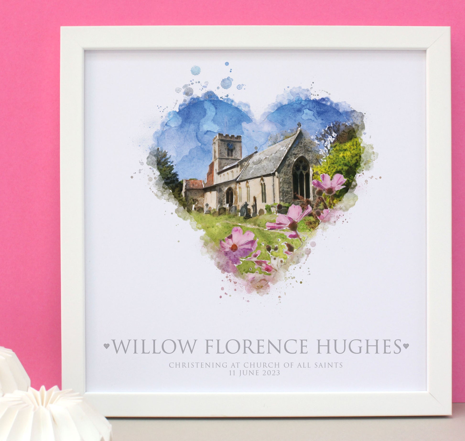 This Christening Venue illustration is a gift that will be treasured for a lifetime, making it an ideal present for both boys and girls on their Christening day.