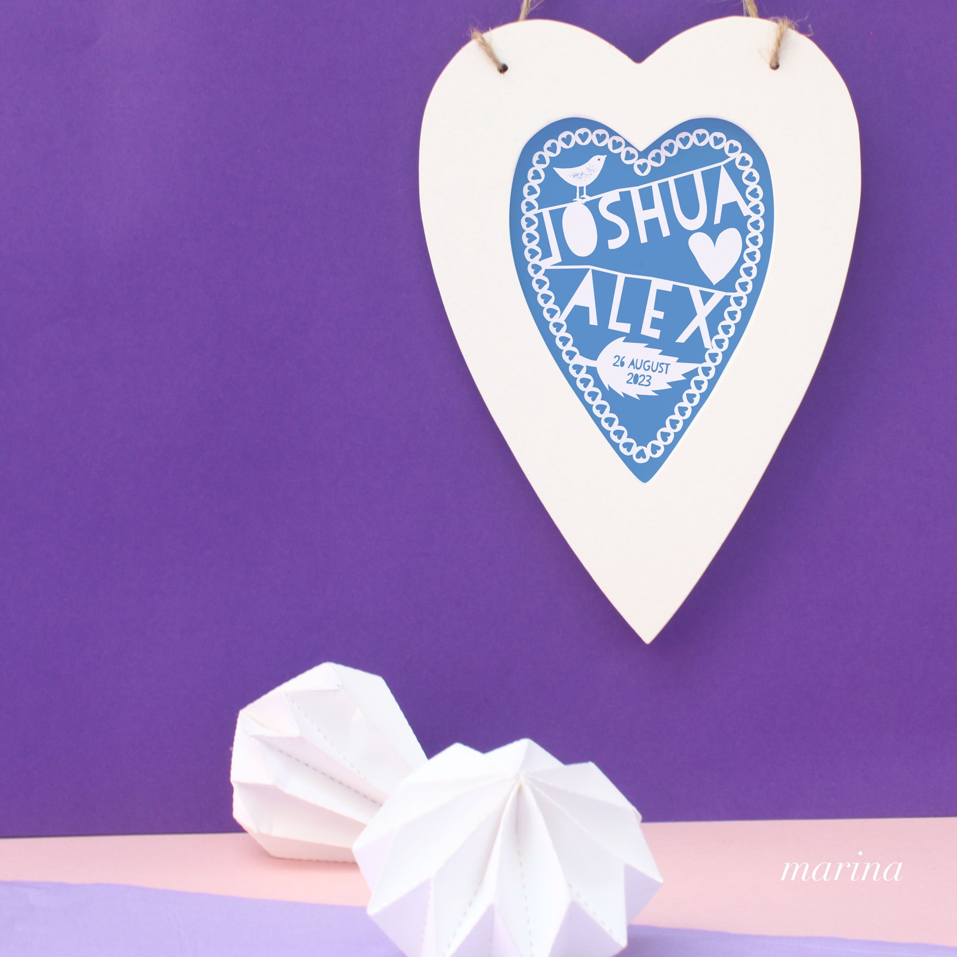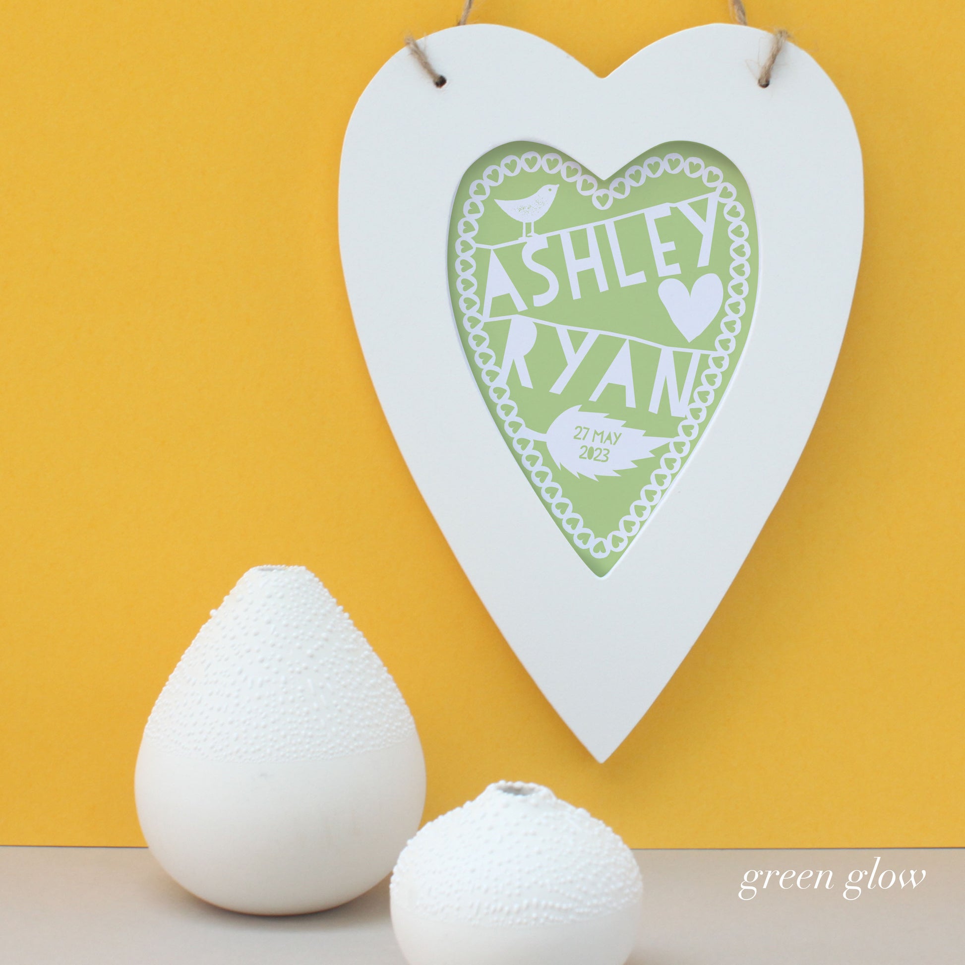 You can also choose 'Mr and Mrs...' (you add the surname) for your heart, making a perfect gift for a wedding.