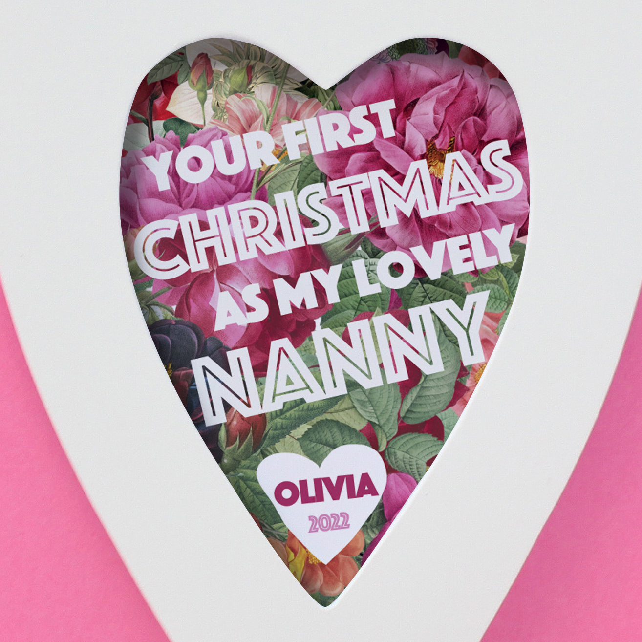 You can supply a description of your nanny, grandmother, nana, nan, they could be...amazing, wonderful, lovely, beautiful, fabulous, incredible, thoughtful, the best....This print can be adapted for mummy, daddy, nanny and grandad, brother, sister or anyone with a special first Christmas.