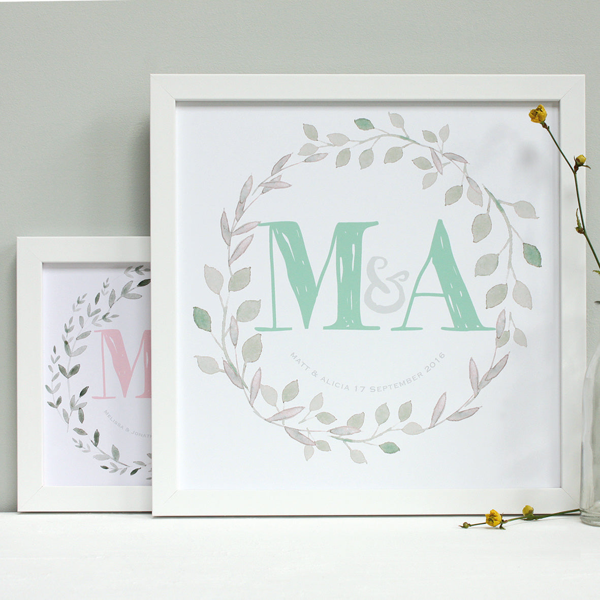You can choose from 9 different watercolour background colours for your heart. You can also choose two different sizes for your framed print, small is 17.5cm x 17.5cm or large 28cm x 28cm, for greater impact.