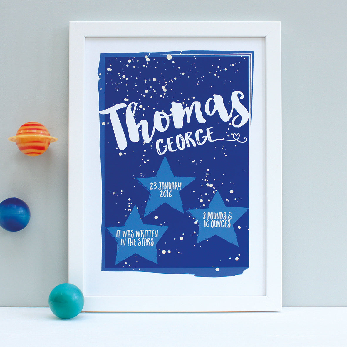 This 'starry' personalised framed print is perfect to celebrate a new baby's arrival in the world.