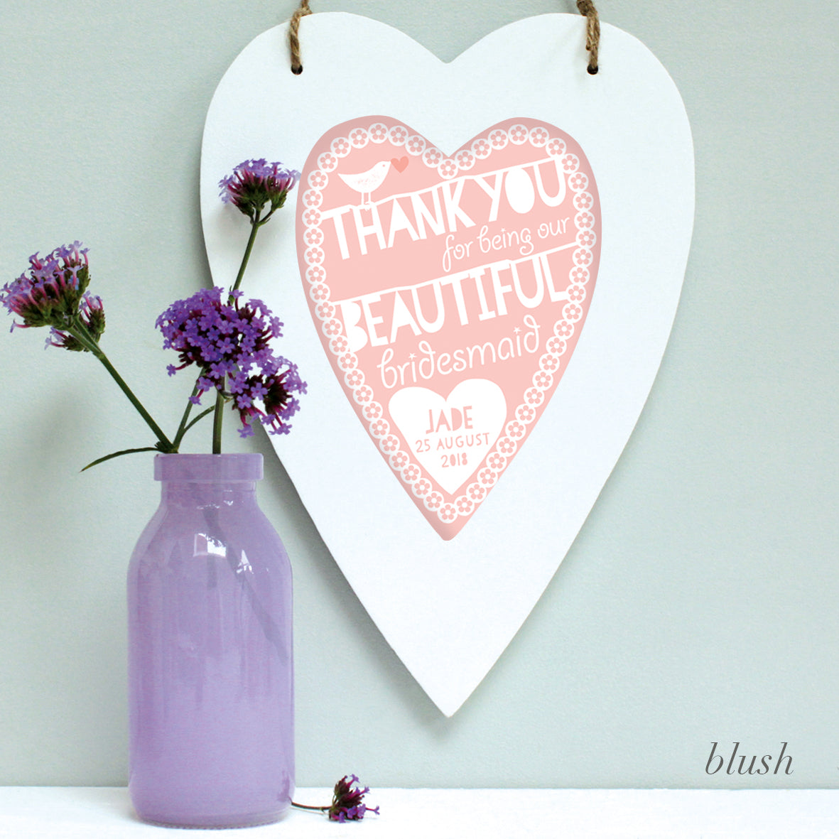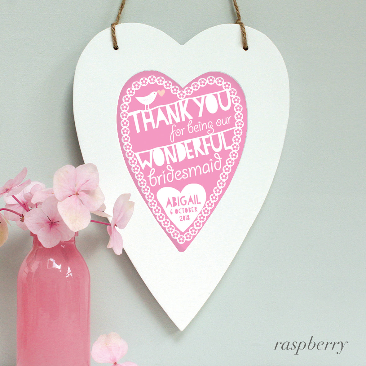 This print is contained in a matt painted white framed heart, there is a choice of daisy or star border around the print and white lettering on a choice of 12 different coloured backgrounds, and a little bird carrying a heart at the top.