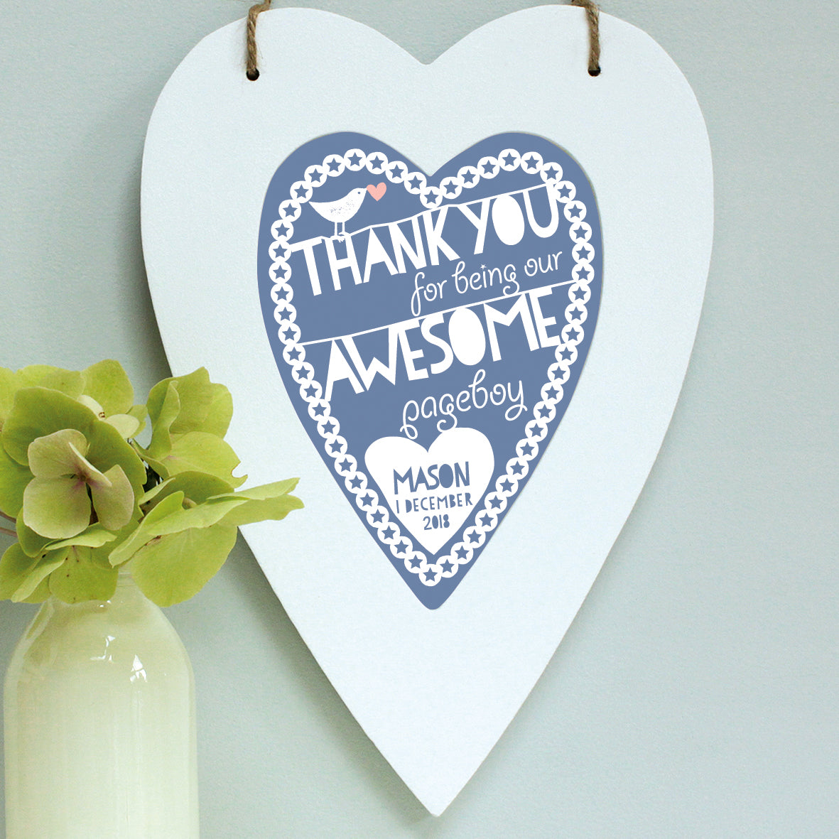Show your appreciation with this unique framed heart which says thank you for how cool, awesome, wicked, handsome, cute, legend your pageboy or young usher were on your special day.