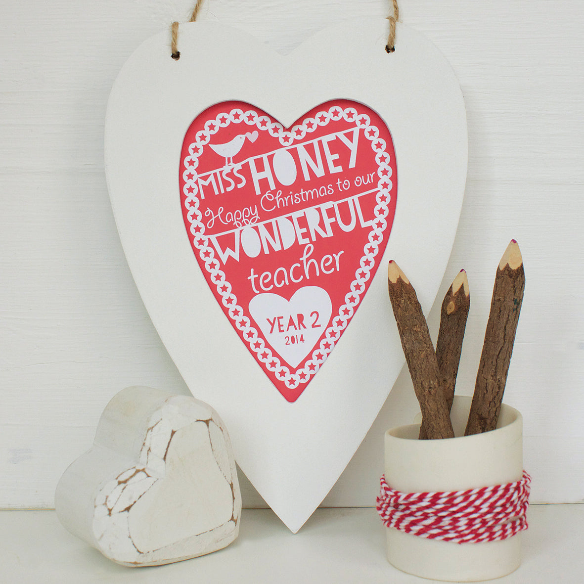 This personalised Christmas heart is a lovely end-of-term thank you to inspirational and patient teaching or nursery staff, also great for childminders and carers.