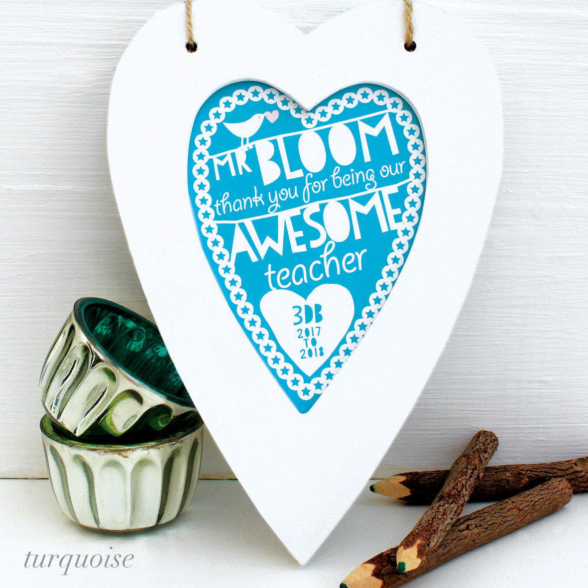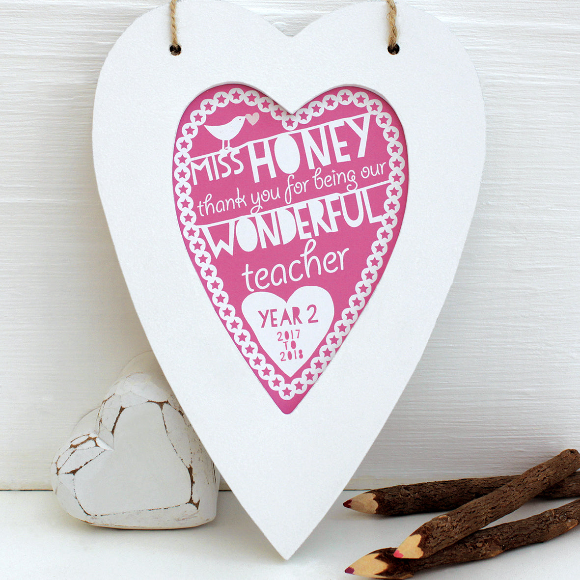 Show your appreciation with this unique framed heart which says thank you to teachers, teaching assistants, nursery teachers, dinner ladies, childminders, nannies, buddies or anyone who deserves a big pat on the back. The heart could be from individuals, classes or years and is a lasting alternative to a class card.