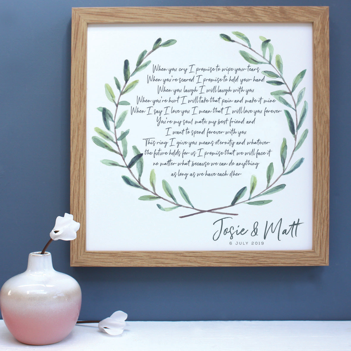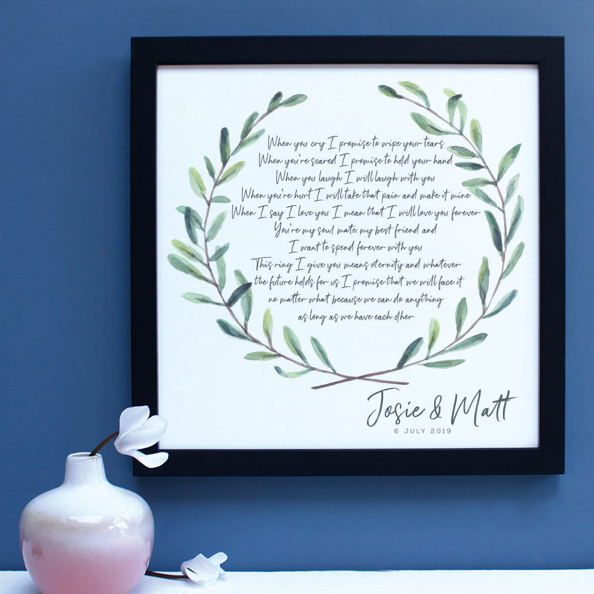 Display your wedding vows within this beautiful watercolour wreath, as a sentimental reminder for your life together.