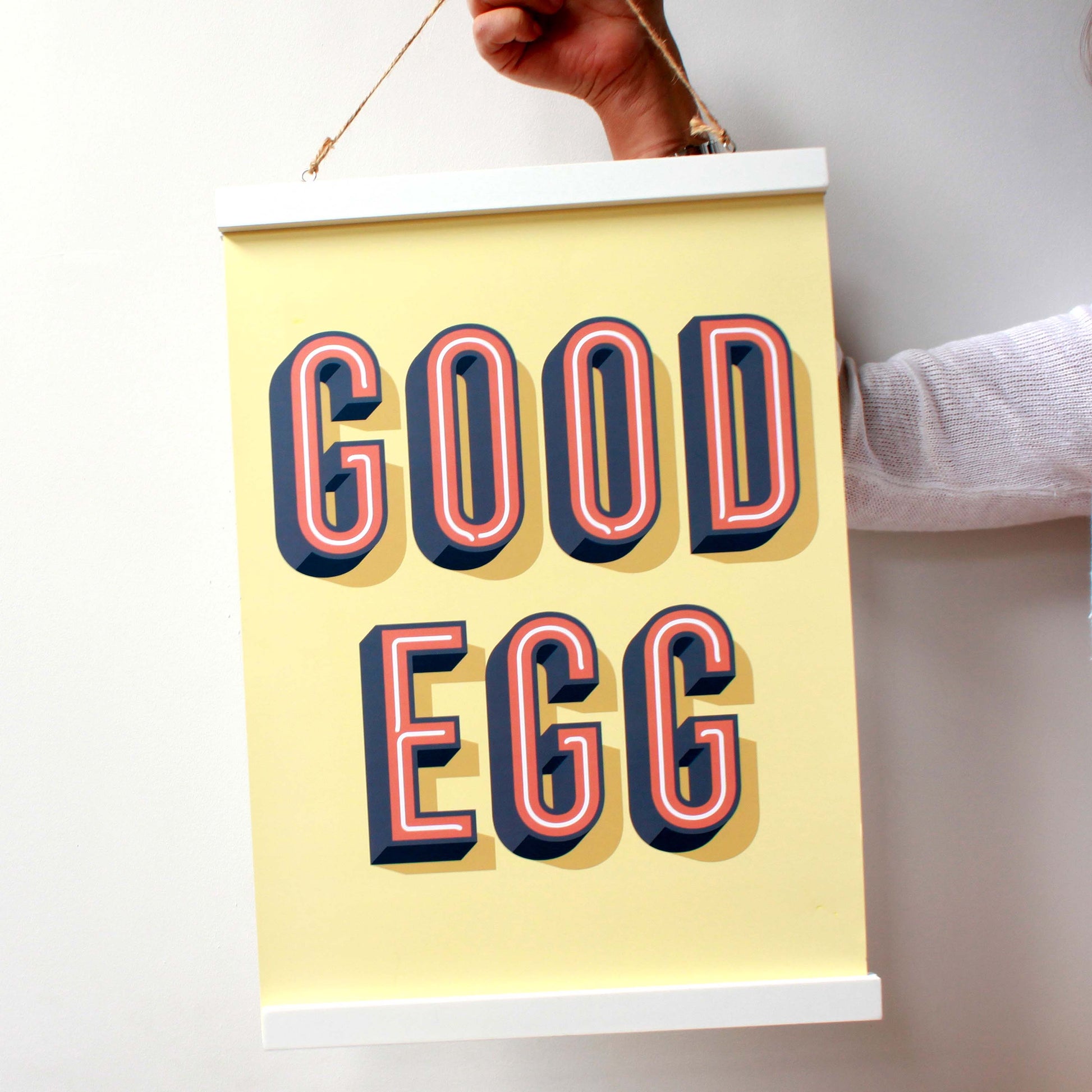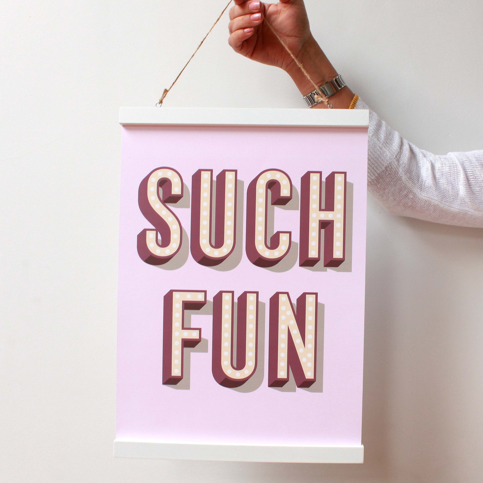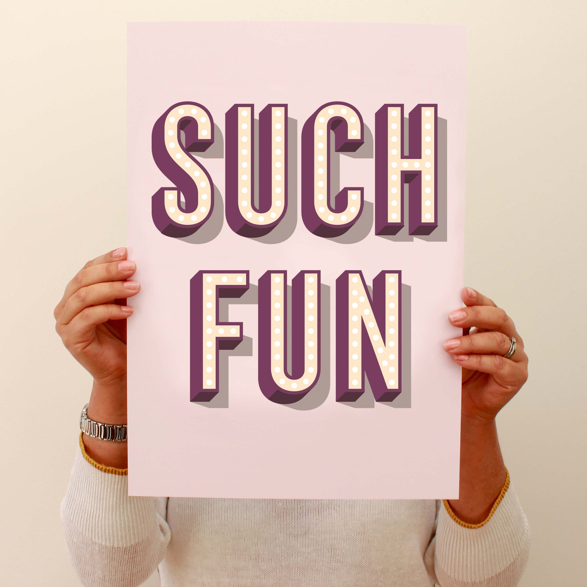 Perfect to celebrate a new job, a great achievement, or for a lovely treat for yourself, these A3 posters are available in four different designs. 'Jolly Good Show' with aubergine and pink lettering on a pale turquoise background. 'Golly Gosh' with dark grey and mint green lettering on a pale lilac background. 'Such Fun' with plum and apricot lettering on a pale pink background. 'Good Egg' with dark blue and terracotta lettering on a pale lemon background. These posters will look stunning displayed on their own or in a group.
