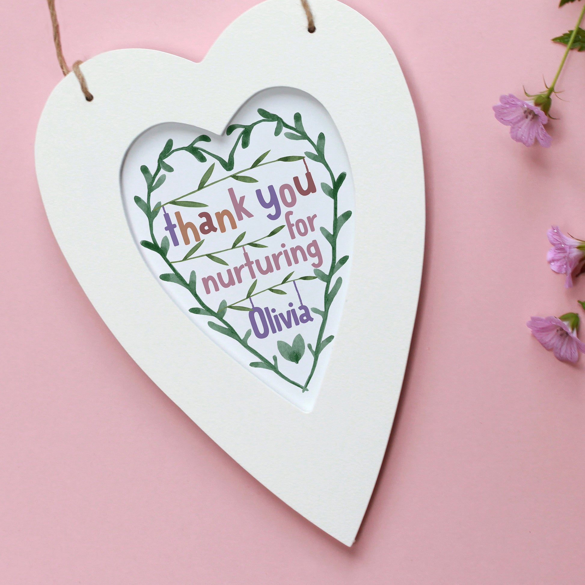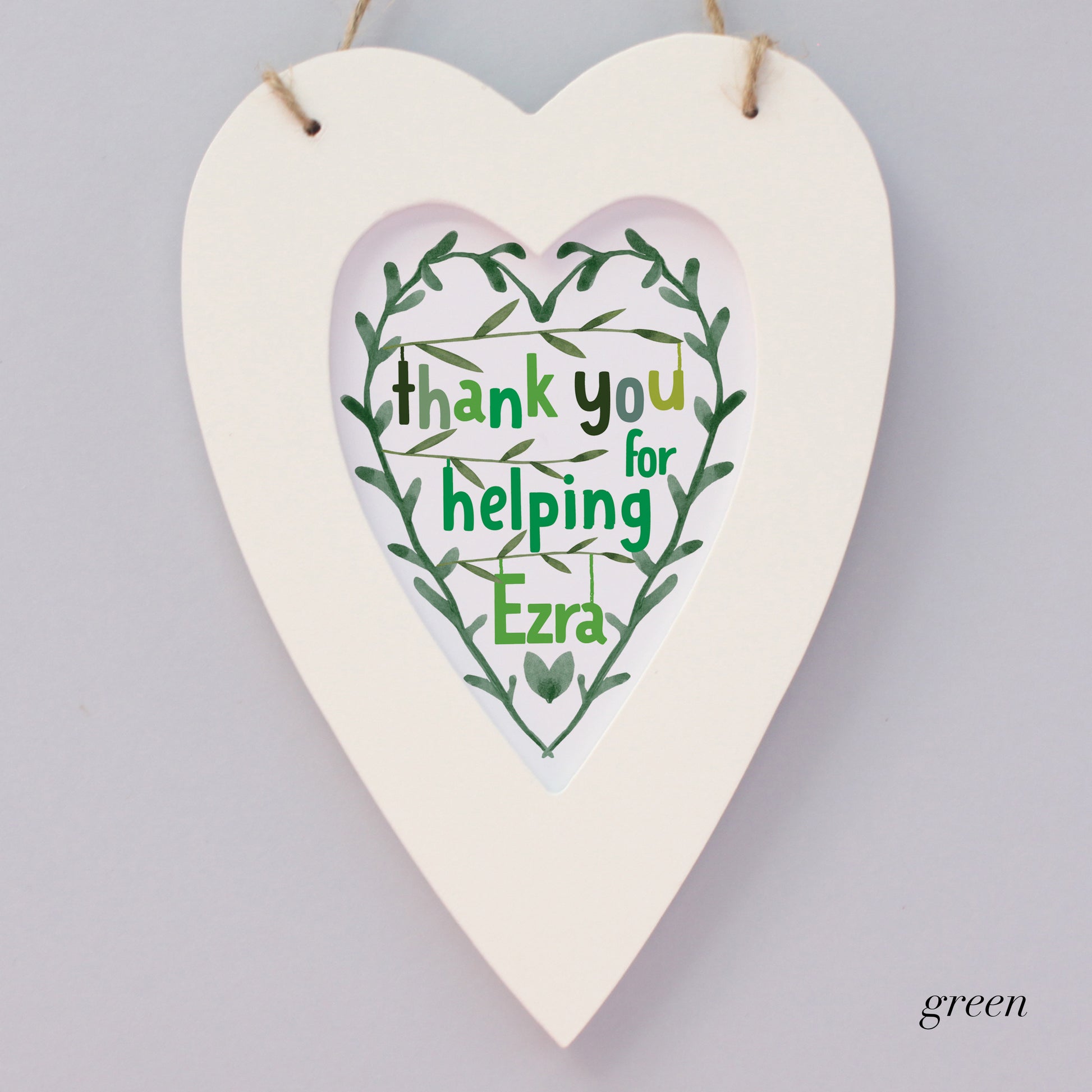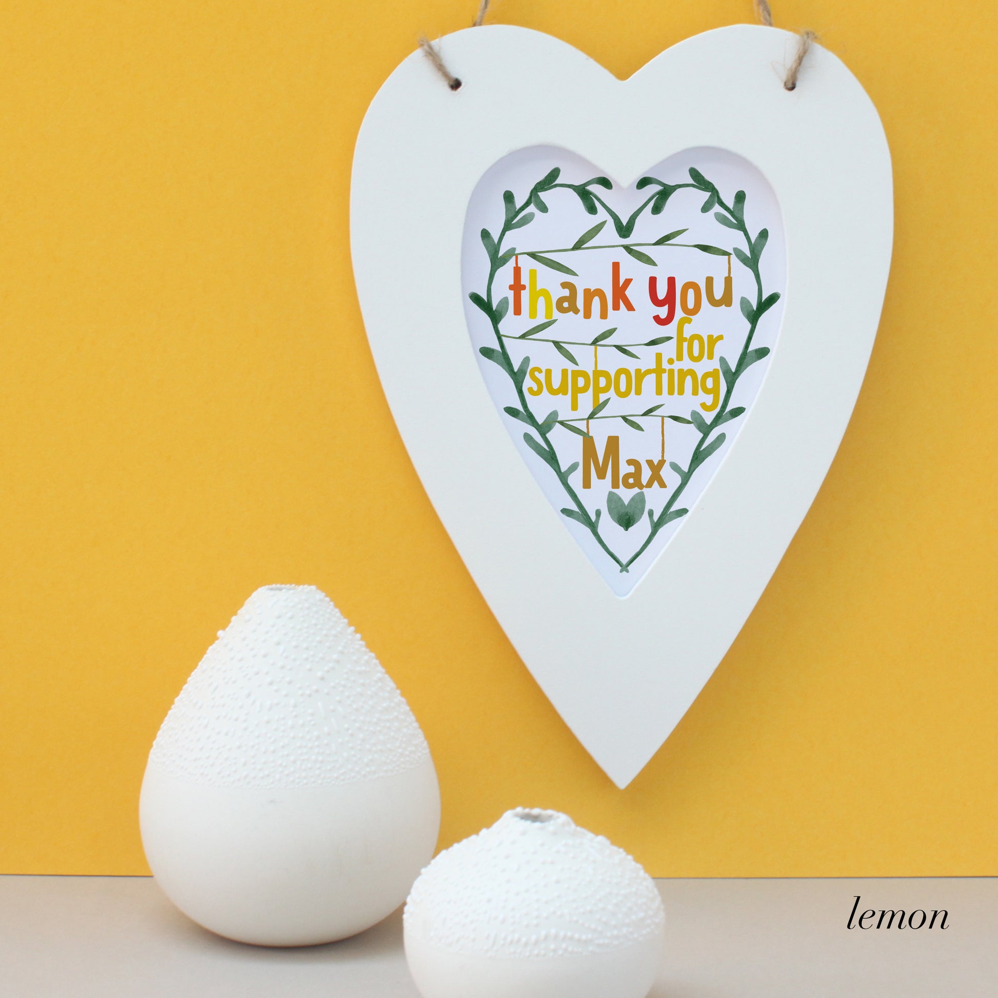 This unique design features a watercolour heart wrapping around the words that you choose. Just simply supply one descriptive word and the name of your child, how about, 'thank you for nurturing Olivia, 'thank you for supporting Jack', 'thank you for caring for Archie', thank you for helping Joy'? Just add your own descriptive word and we will create a one-off gift that they'll cherish for years to come.